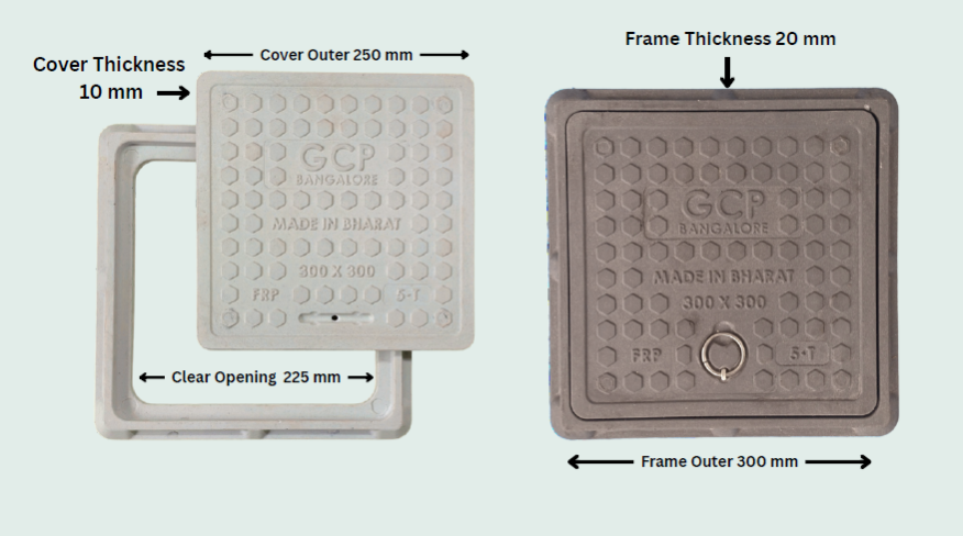- Name of the product: FRP 12 × 12 GCP Grey & Ivory Manhole Cover (Chamber Cover)