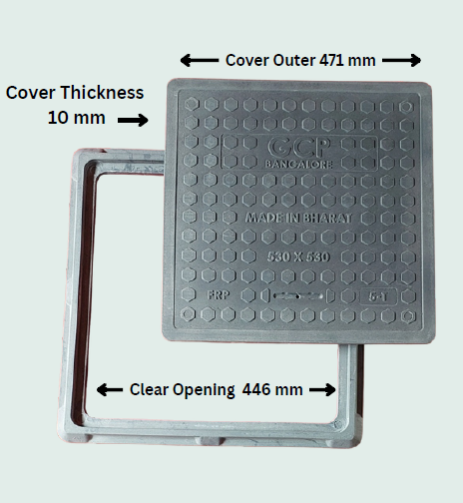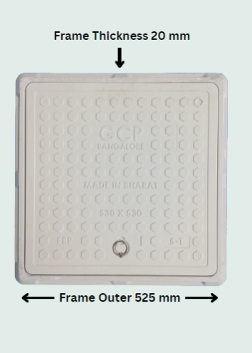 FRP 21 X 21 Inch (Outer x Outer) CAPACITY: 5 Tons (Walkway) GCP GREY & IVORY, MANHOLE COVER (CHAMBER COVER)