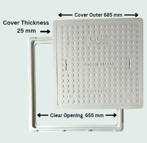 FRP 30 X 30 Inch (Outer x Outer) CAPACITY: 5 Tons (Walkway) GCP GREY & IVORY, MANHOLE COVER (CHAMBER COVER)