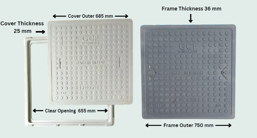 Name of the product: FRP 30 × 30 Inch GCP Grey & Ivory Manhole Cover (Chamber Cover)
