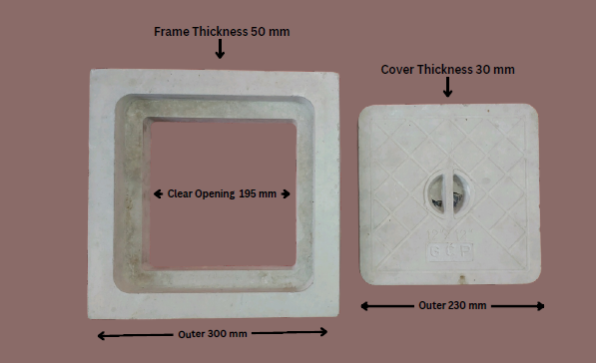 RCC 12 X 12 Inch (Outer x Outer) CAPACITY: 2.5 Tons LIGHT DUTY (LD), MANHOLE COVER (CHAMBER COVER)