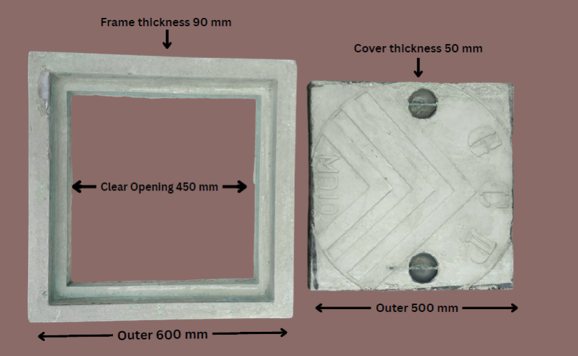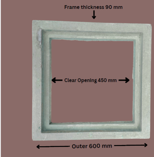 RCC 18 X 18 Inch (Outer x Outer) CAPACITY: 10 Tons MEDIUM DUTY (MD), MANHOLE COVER (CHAMBER COVER)